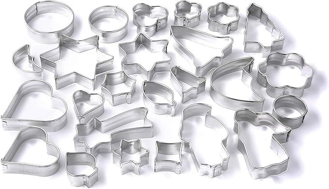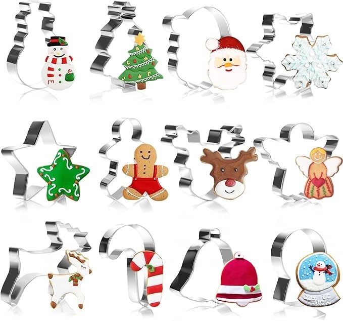 Material & Verarbeitung: Rostfreier Edelstahl, poliert, haltbar und glänzend.Set-Zusammensetzung & Formenvielfalt: Zwölf weihnachtliche Ausstechformen im Set.
