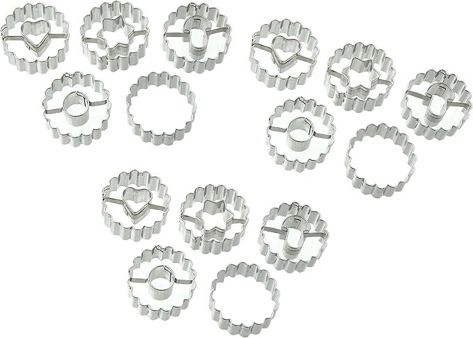 Material & Verarbeitung: Rostfreier Edelstahl, polierte, glatte Oberfläche.Set-Zusammensetzung & Formenvielfalt: Fünfzehn kleine Förmchen für Linzer-Plätzchen.