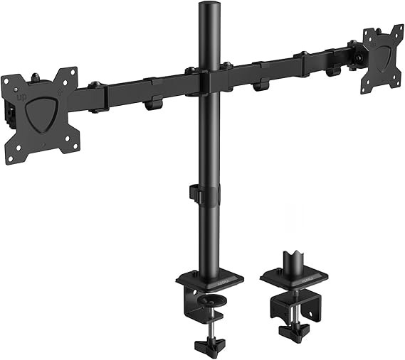 Tragfähigkeit & Kompatibilität: 2×8 kg, 13–27″, VESA 75/100Verstellmöglichkeiten & Ergonomie: Neigung ±10°, Schwenkung 180°, Drehung 360°