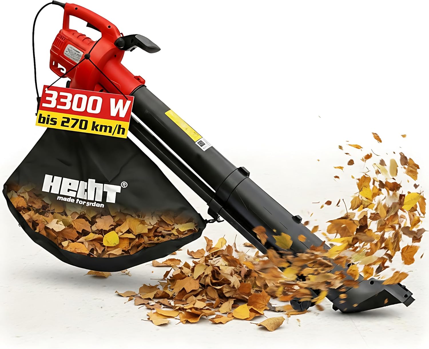 Leistung & Luftgeschwindigkeit: Starke 3000W, 275 km/h Gebläse.Luftvolumen & Durchsatz: Zerkleinert Laub im Verhältnis 10:1.