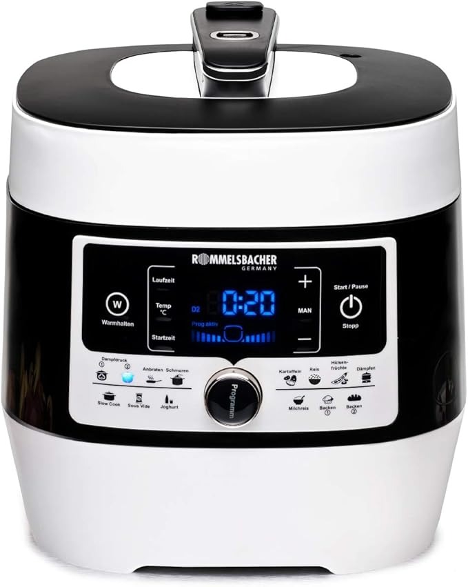 Funktionen & Kochprogramme: 10 Programme, Schnellkochen, Sous-vide.Kapazität & Leistung: 5 Liter Kapazität, 1000 Watt.