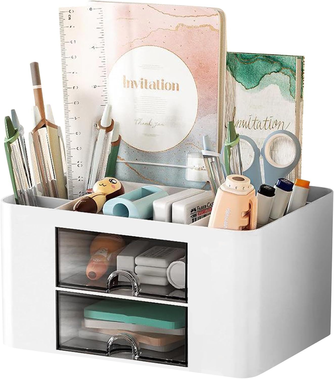 Aufbau & Fächerstruktur: Kombiniert Stifthalter, Ablagen und Schubladen, um kleine Büroutensilien perfekt zu organisieren.